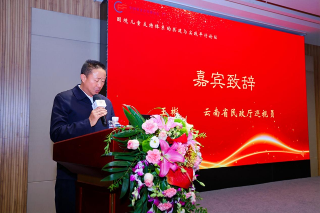 会议伊始,云南省民政厅巡视员王彬致辞。王巡视代表云南省民政厅向平行论坛的顺利召开表示热烈祝贺。他表示,困境儿童作为需要特别关爱的群体,他们的生存发展状况牵动着社会、家庭,体现着民生福祉。近年来,各级各部门各组织深入学习贯彻习近平总书记关于民生工作的重要指示批示精神,紧紧围绕国家经济社会发展大局,通过政策创制、资金支持、动员社会力量参与等有力举措,积极推动包括困境儿童在内的各项民生工作取得实实在在的成效。云南省结合实际,创新出台《"云尚有福·七彩童年"留守、流动儿童及困境儿童关爱服务项目实施方案》。十四五"期间我省4次提高集中养育儿童、散居孤儿和事实无人抚养儿童基本生活保障标准,率先出台《云南省儿童福利机构集中养育孤儿成年后安置办法》等,为困境儿童健康成长创造了安全良好的社会环境。他强调,困境儿童关爱工作离不开政府部门的精准施策、统筹协调,也离不开社会各界的鼎力支持。他希望,通过本次论坛,进一步凝聚共识,探索总结出更多更好更切合实际的加强困境儿童关爱服务工作经验,携手构建一个有利于困境儿童健康成长的良好环境,让每一位困境儿童都感受到党和政府的温暖,都能在社会的关爱呵护下度过一个开心、快乐的童年。