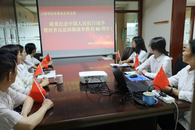 为进一步加强党建与业务深度融合,激发全体党员及进步青年铭记历史、缅怀先烈的爱国热情,传承和弘扬伟大抗战精神。云南省扶贫基金会党支部于2025年9月3日组织全体成员开展了隆重纪念中国人民抗日战争暨世界反法西斯战争胜利80周年党建活动。此次活动的主要内容为学习习近平总书记在纪念中国人民抗日战争暨世界反法西斯战争胜利80周年大会上的重要讲话精神和观看阅兵仪式。