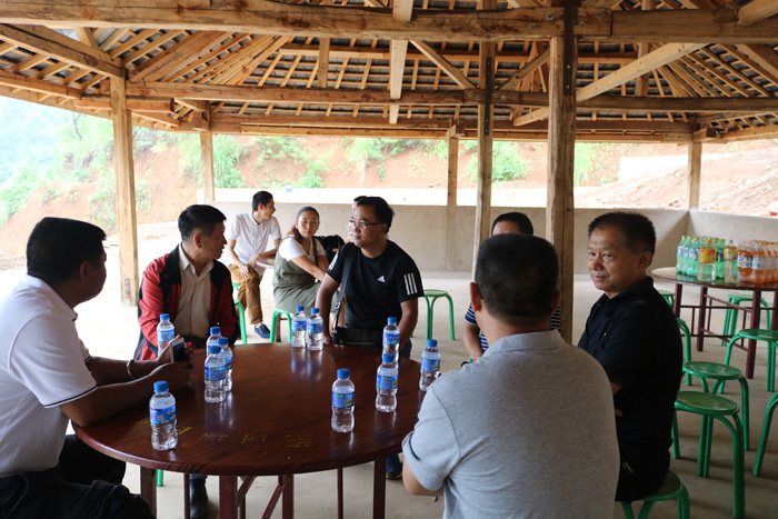 【芒信镇、村领导干部向我会理事长汇报项目实施情况】