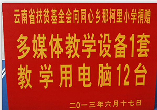 为了扶持宁洱县同心乡那柯里小学开展远程教育,加强教育信息化建设,改善乡村小学办学条件,逐步提升教学质量,提高课程教学效果,促进当地教育事业的发展。 在宁洱县政协教科文卫体委员会向我会申报,要求资助帮助改善该校的办学条件。本着我会一贯的扶贫先扶智的原则和“拾遗补缺、量力而行,讲求实效”的精神,我会同意捐赠给那柯里小学多媒体教学设备一套、学生用电脑12台(共计八万元),由宁洱县政协教科体文卫委员会负责组织、实施。多媒体、电脑由我会招标采购后组织统一运到学校进行安装调试,县教育局、县政协教科文卫体委员会和学校相关负责人逐件验收并出具验收清单。